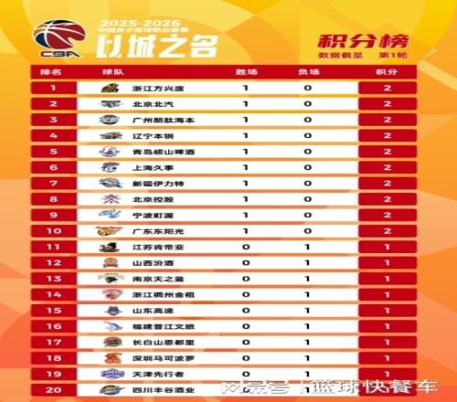 目前,CBA积分榜上,前十名的球队都赢球了,而后面10名的球队,他们都输球了。目前,积分榜上,卫冕冠军广厦还是继续领跑,他们在揭幕战首秀大胜山西队,排在了积分榜第一名。而排在积分榜第二名的则是北京队,排在第三名则是广州队。四冠王辽宁队,他们在首轮也成功击败天津队,暂居积分榜第四名。而排在积分榜第5名的则是青岛。换句话说,CBA积分榜前5的球队,他们的排名没有任何变化。