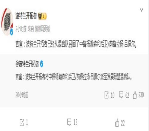 如今开拓者官方宣布,将杨瀚森与吕佩尔从发展联盟召回。只是开拓者下一场比赛是12月19日主场对阵国王,因而根据开拓者跟队记者Casey补充报道,他预计杨瀚森和吕佩尔在跟随开拓者完成周二(美国时间)的训练后,会被再次被下放。